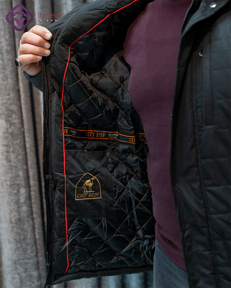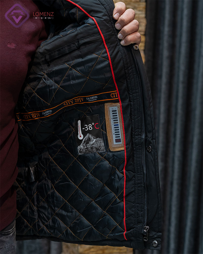 • طرح داخلی کاپشن: استفاده از آستر پشم شتر، دارای یک جیب زیپ دار، و یک جیب پاکتی و دماسنج