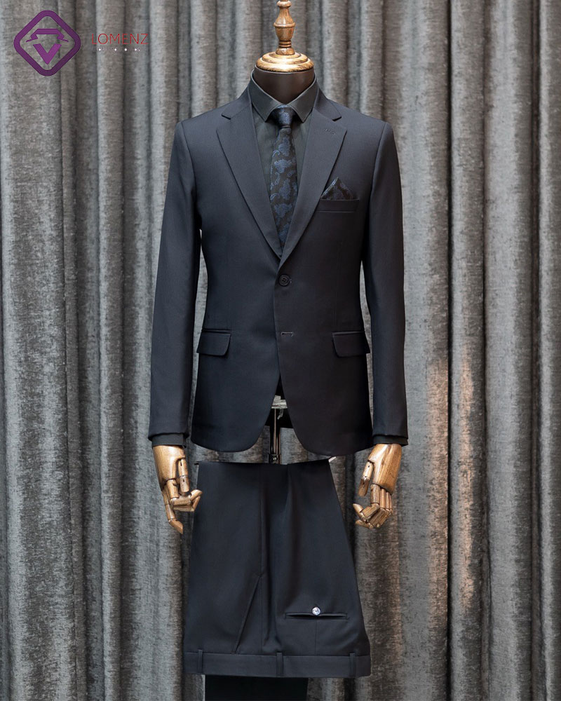 - مدل دوخت: یقه انگلیسی، دو دکمه، دو چاک، دراپ ۶ استاندارد، شلوار کلاسیک و فاق بلند