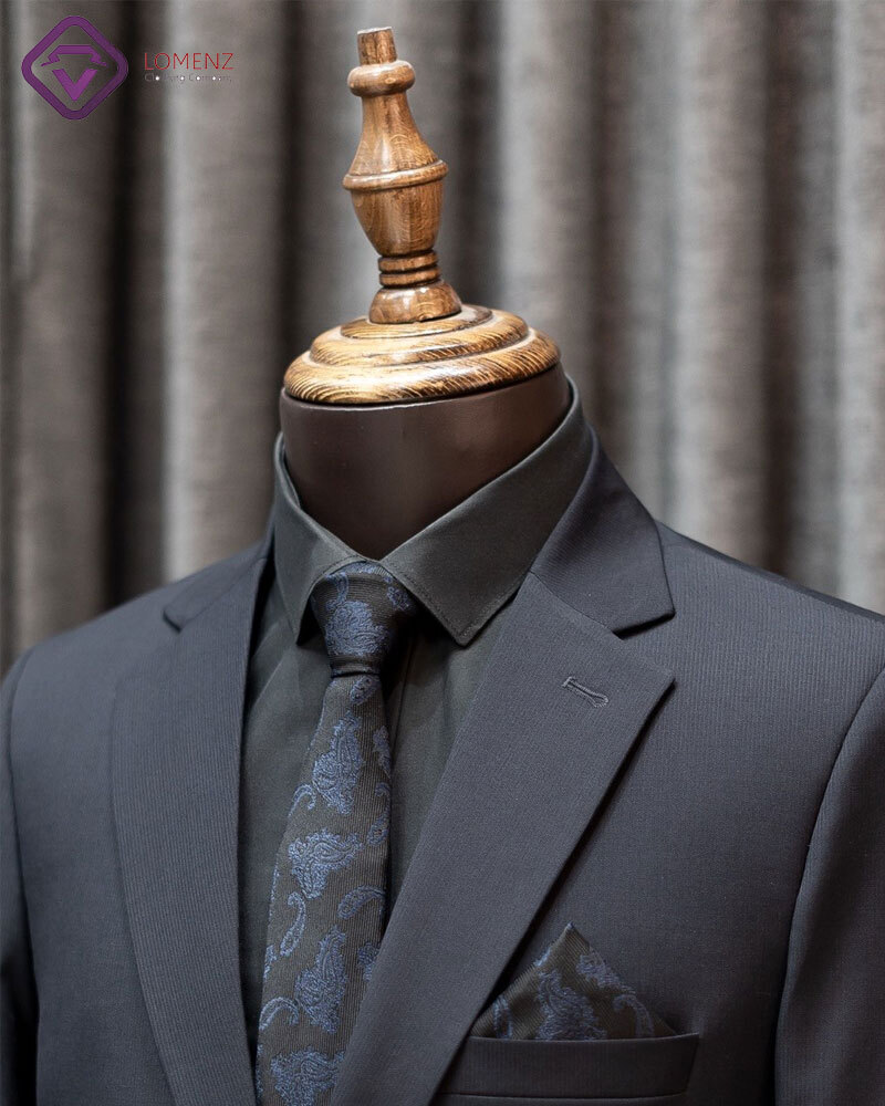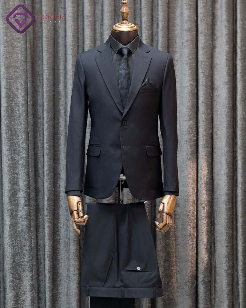 • مدل دوخت: یقه انگلیسی، دو دکمه، دو چاک، دراپ ۶ استاندارد، شلوار کلاسیک و فاق بلند